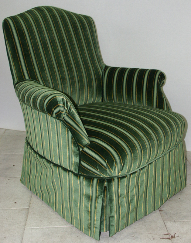 Stile armchair Padded armchair made traditionally with spring, seats and back are fixed and covered with a selected fabrics.