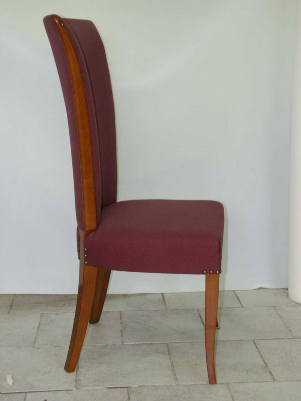 Chair dining table upholstered fixed system with parts in cherry wood light finish.