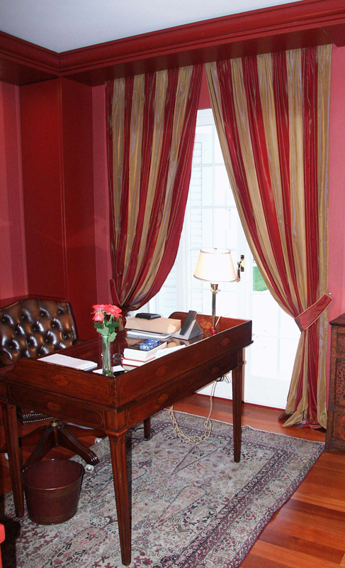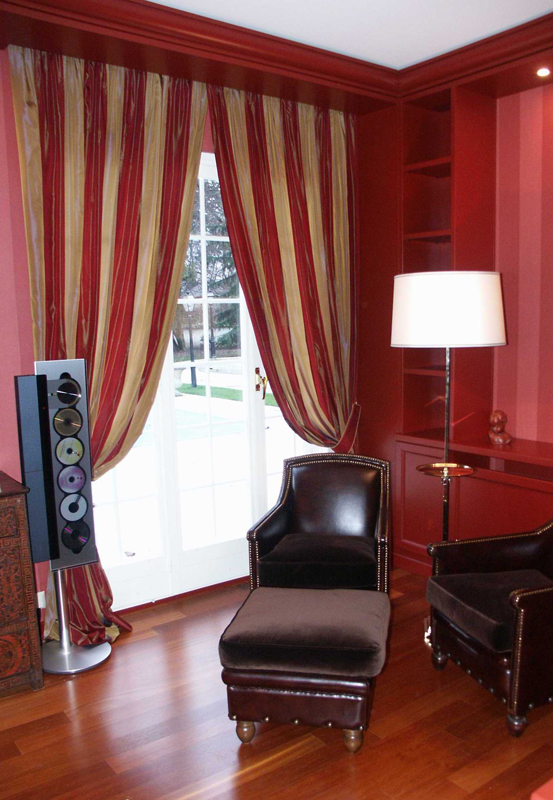 Traditional Curtain with fixed pleats applied to wrought- binary aluminum slides and leaned abundant on earth with bracelets to pick-up the curtain.