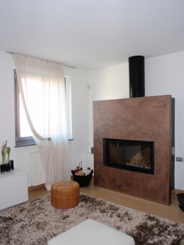 Traditional Curtain with fixed pleats applied to wrought brushed steel stick.
