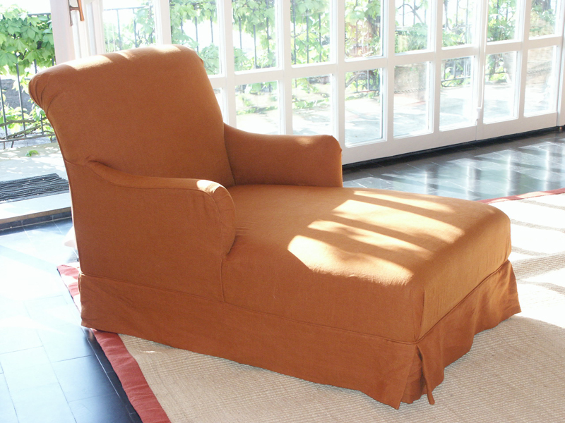 Dormeuse imbottita sistema tradizionale con molle, versione rivestimento fisso.