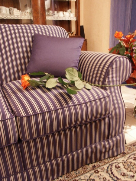 Divano 3 posti imbottito sistema tradizionale a molle con schienale fisso e cuscini seduta in piuma; versione sfoderabile.