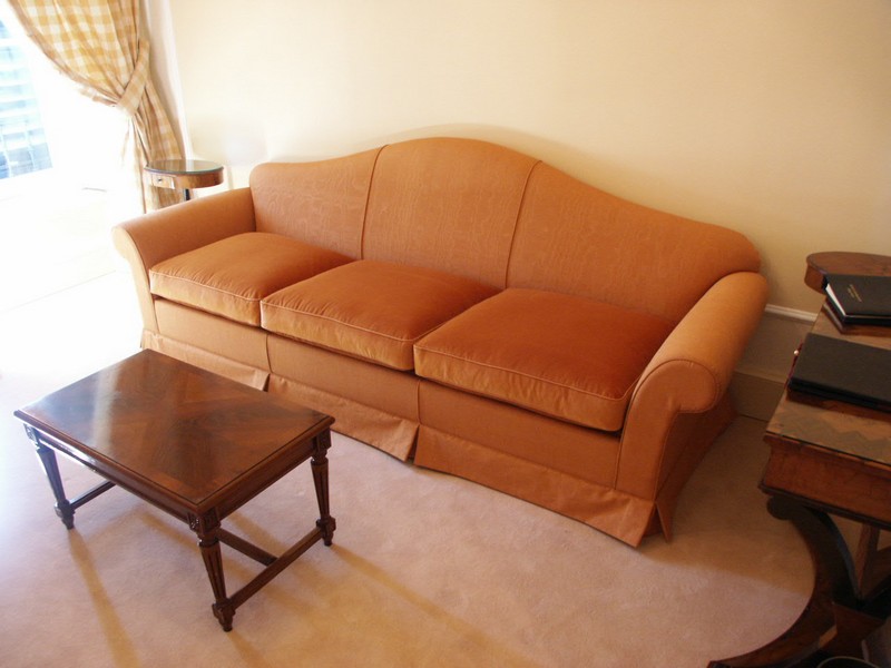 Divano 3 posti imbottito sistema tradizionale a molle con schienale fisso e cuscini seduta in piuma; versione sfoderabile.